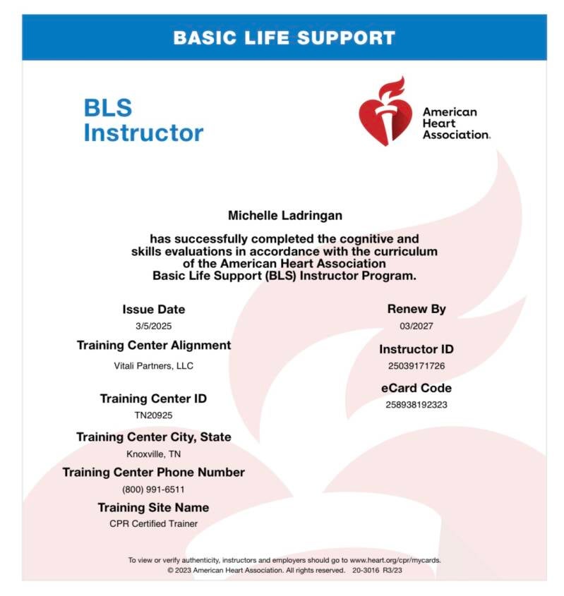 The AHA’s BLS Course is designed for healthcare professionals and other personnel who need to know how to perform CPR and other basic cardiovascular life support skills in a wide variety of in-facility and prehospital settings.